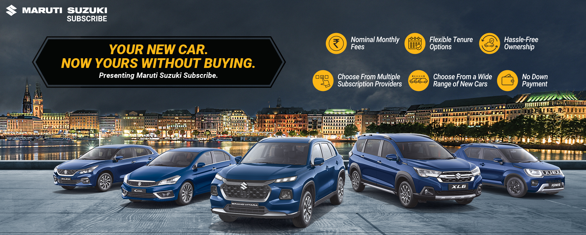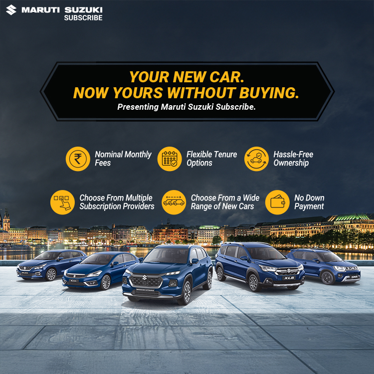 Maruti Suzuki Subscribe enables all customers to enjoy driving their preferred Maruti Suzuki cars without having to deal with all the financial responsibilities that come with owning a car.All you need to do is opt for a monthly subscription plan at a fixed monthly fee, which includes the routine maintenance and insurance costs, and choose a flexible tenure. At RNS Motors in, , Dharwad, all Hatchback, Sedan, SUV, the MUV models line-up includes Baleno, Invicto, EVitara, Jimny, Ciaz, Ignis, Fronx, Grand Vitara, XL6. Here, you will enjoy Maruti Suzuki Subscribe benefits such as: